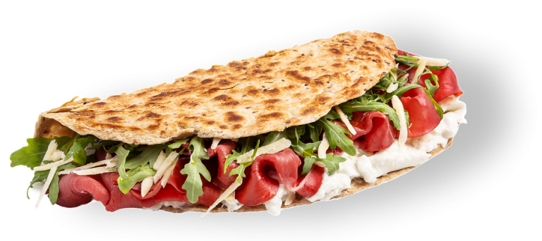 La nostra piadina, friabile leggera e dorata, è un equilibrio di sapori ottenuta dalla scelta accurata degli ingredienti. Provala in tutte le nostre irresistibili combinazioni.